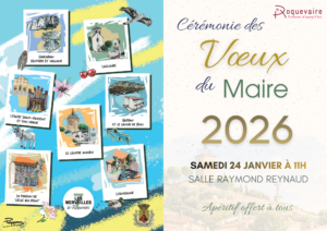 La Cérémonie des Vœux se déroulera le samedi 24 janvier à 11h00, dans la salle Raymond Reynaud.
