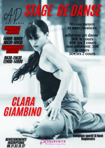 L’association Art Danse vous propose un stage de danse contemporaine avec la danseuse et chorégraphe Clara Giambino qui s’adresse aux danseurs de niveau moyen et inter/avancés.