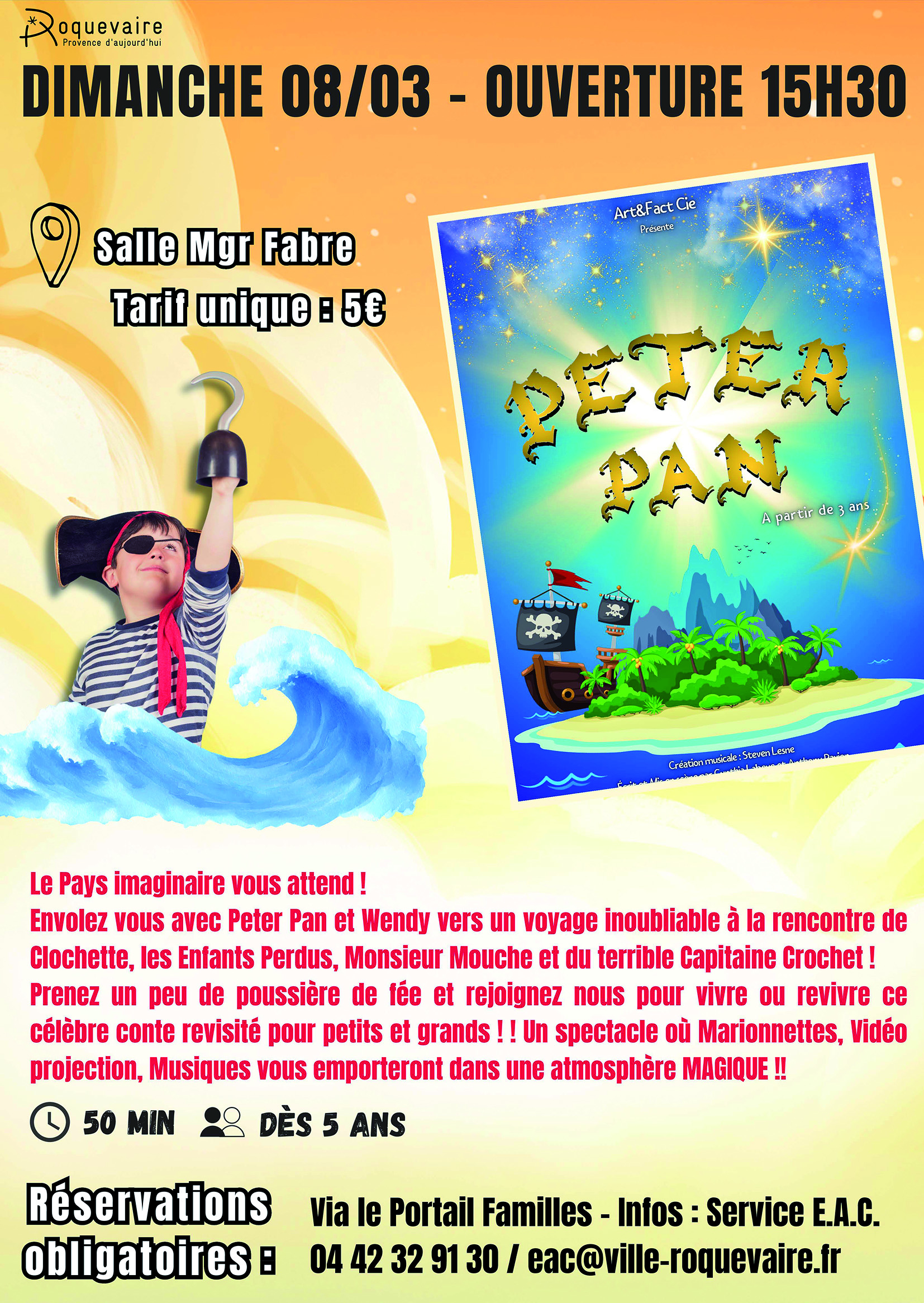 Dans le cadre de la saison culturelle "Le Printemps des enfants" Le Pays imaginaire vous attend ! Envolez-vous avec Peter...