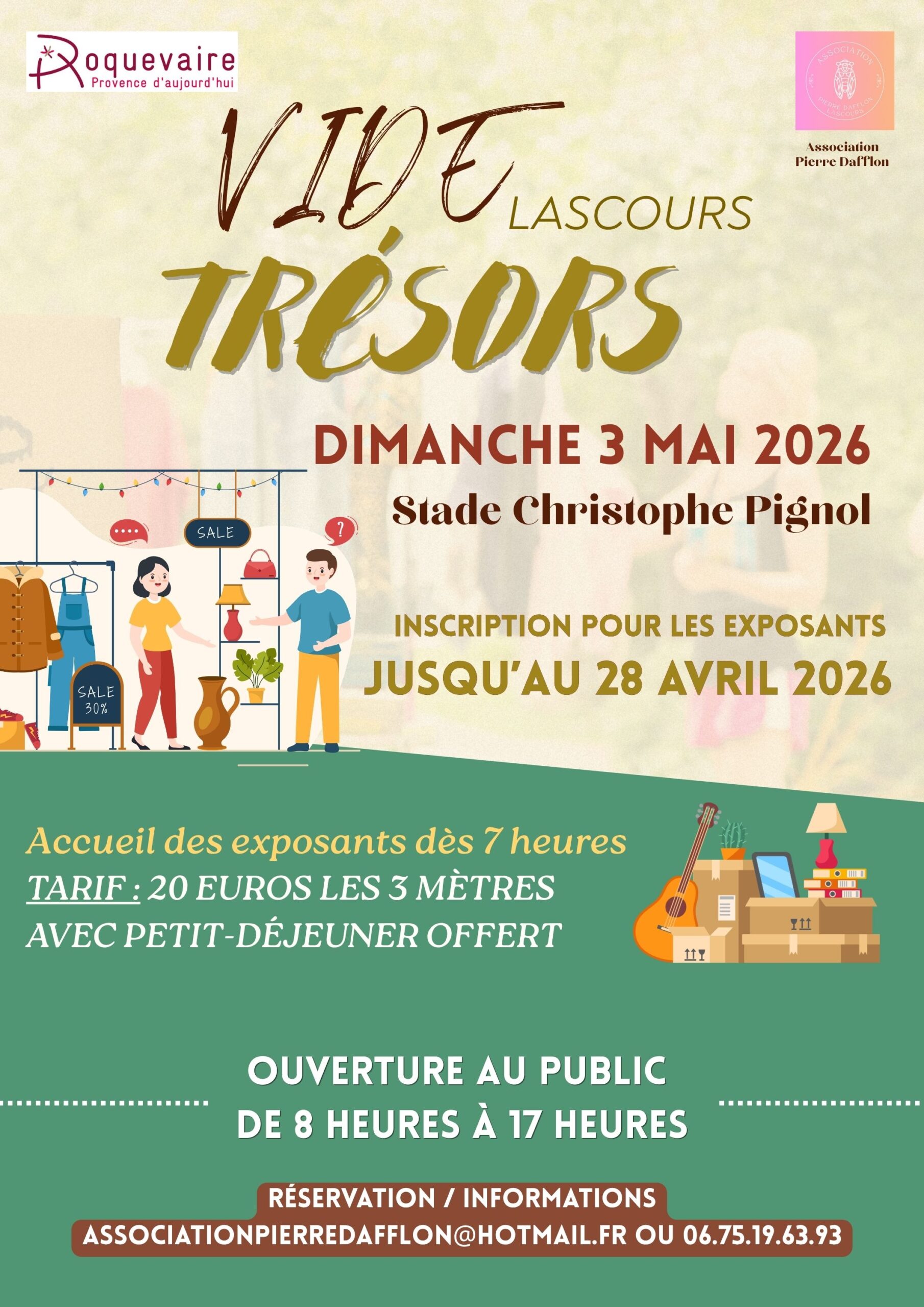| 0 évènement, | 0 évènement, | 0 évènement, | 0 évènement, | 2 évènements, La traditionnelle Fête de l'âne organisée par la Confrérie Saint-Eloi Saint-Vincent de Roquevaire se tiendra le 1er mai. Au Pré... Gratuit Amateurs de bonnes affaires, chineurs passionnés ou simples curieux en quête de bonnes trouvailles… le prochain vide-greniers organisé par la... | 0 évènement, | 1 évènement, - L'association Pierre Dafflon organise un "Vide Trésors" : un mix parfait entre vide-greniers et vide-dressing, où tout se vend, tout... |