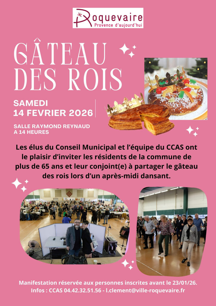 La Ville de Roquevaire invite les séniors au traditionnel Gâteau des Rois le samedi 14 février à partir de 14 heures dans la salle Raymond Reynaud.