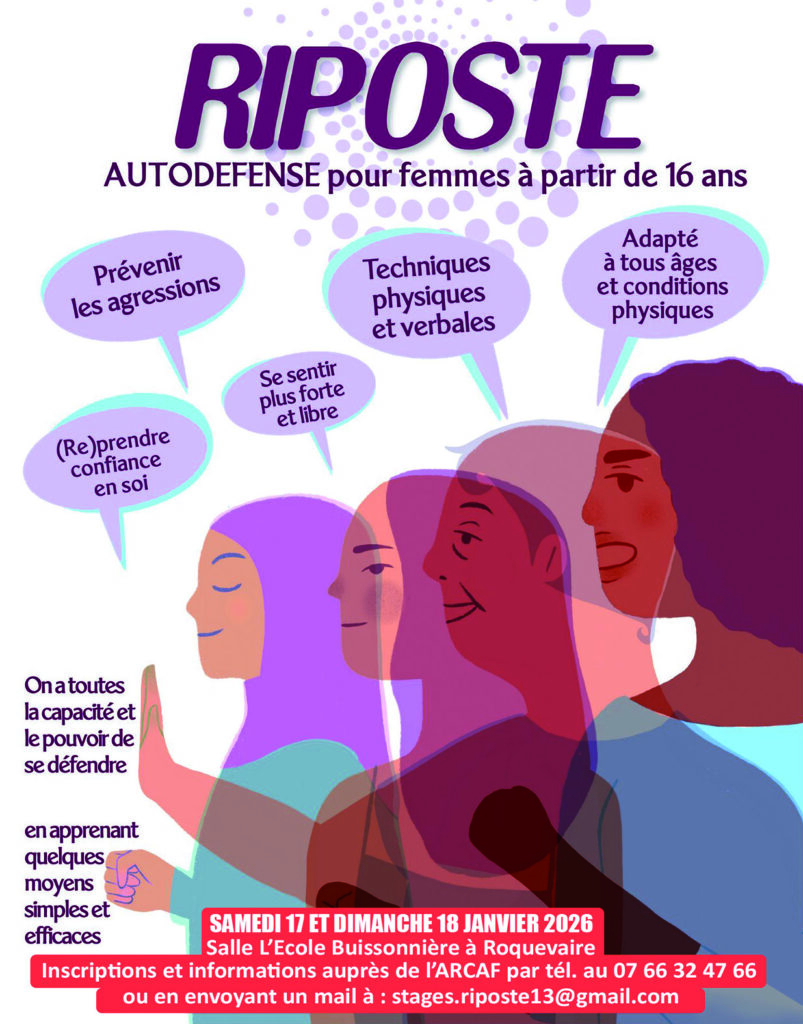 Tarif : 10 €. Inscription : 07.66.32.47.66 – stages.riposte.13@gmail.com