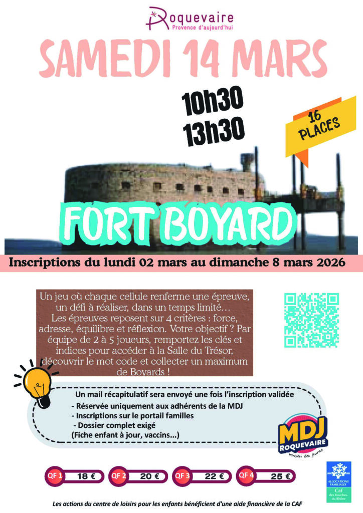 Evènement MDJ : sortie Fort Boyard : samedi 14 mars, de 10h30 à 13h30.