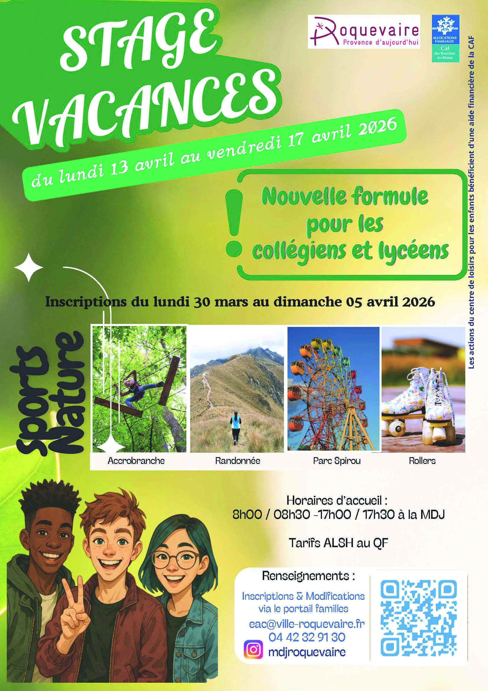 STAGE PRINTEMPS : du lundi 13 avril au vendredi 17 avril sur le thème des Sports Nature